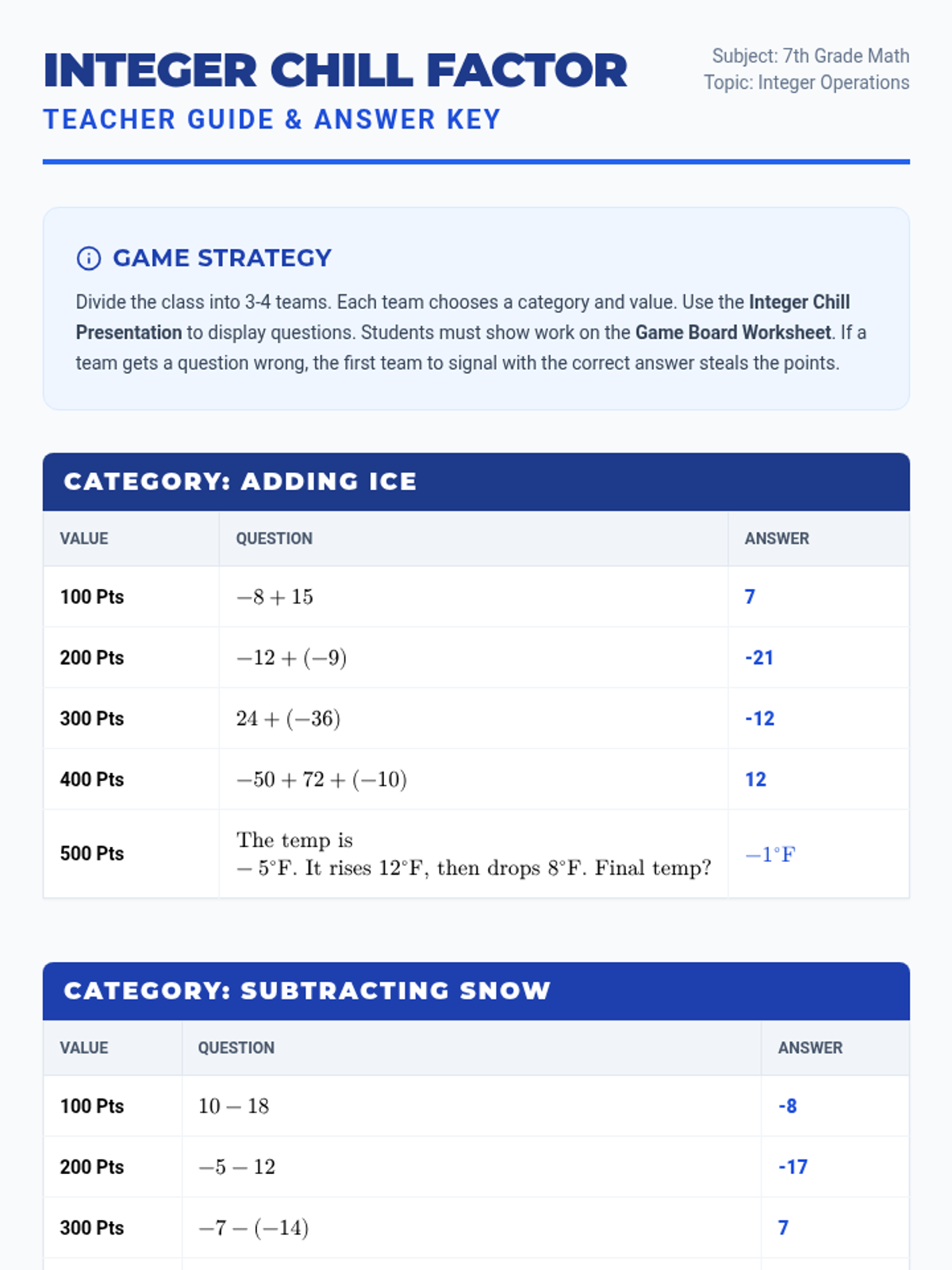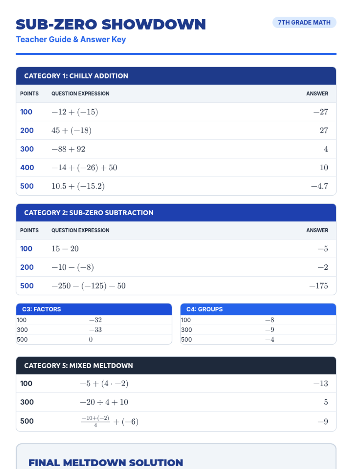 An answer key for both the Number Map Notes and the Category Catch Worksheet, providing teachers with complete Venn diagrams, classification tables, and explanations.