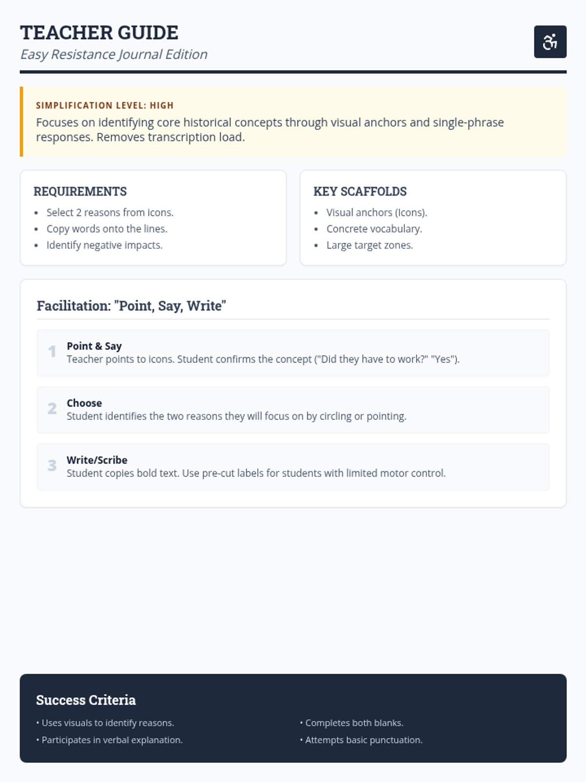 A comprehensive teacher guide for facilitating the 90-minute training. Includes learning objectives, a detailed agenda with pacing, scenario examples for activities, and differentiation strategies. Revised for better layout and consistent page breaks.