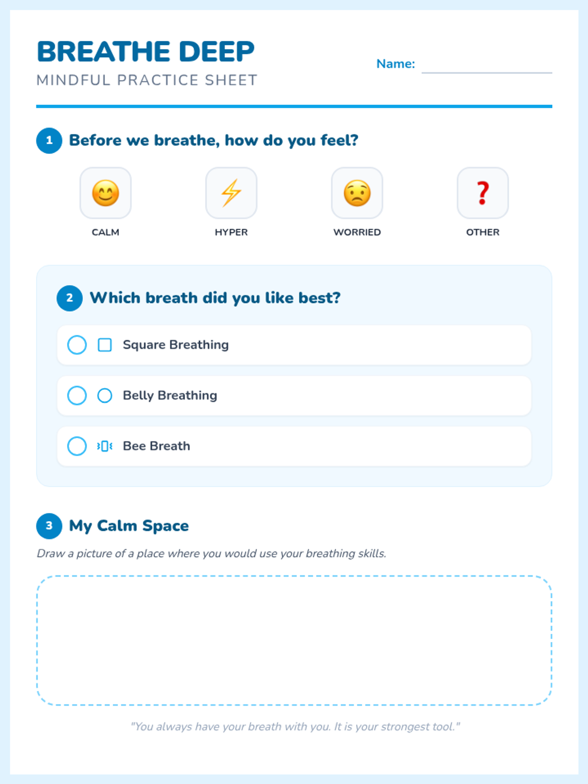 A reflective cool-down activity where students summarize their learning about empathy in a single word and an accompanying illustration.