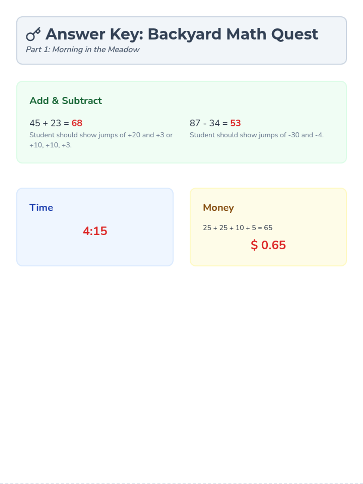 Answer key for the Backyard Explorer Homework Packet. Provides clear answers for all 3 pages of mixed review problems.