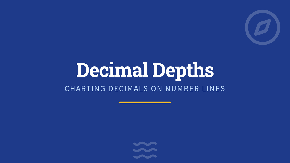 A 16:9 presentation for TEKS 4.3G, using a nautical theme to explain the placement of decimals and fractions (tenths and hundredths) on a number line. Includes visual models and interactive challenges.