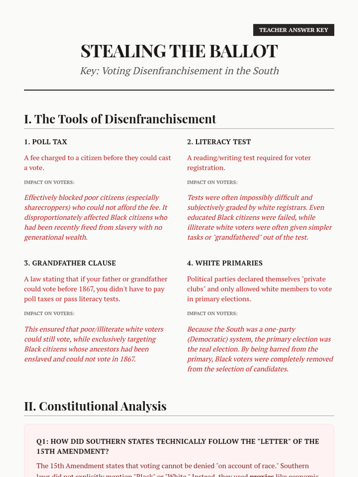 A 12-slide presentation version of the Oval Office assessment, updated to align with the latest Guided Reader by including questions on the Community Reinvestment Act (CRA) and the Heritage Foundation. Font sizes optimized for classroom visibility (min 24px).