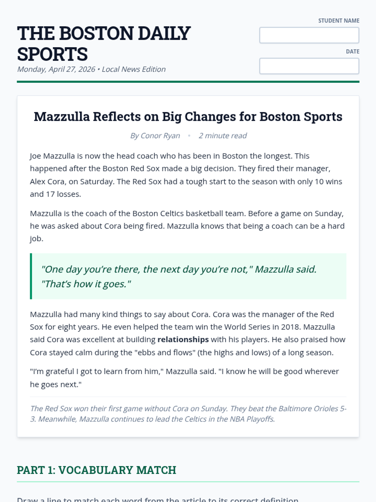 A detective-themed exit ticket for a quick end-of-lesson assessment of singular possessive noun rules.