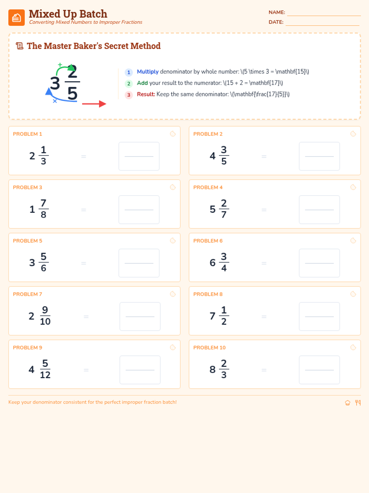 A roomy, two-page measurement conversion worksheet with three multi-step word problems. Provides extensive workspace, guided steps, and conversion charts for length, time, and volume.