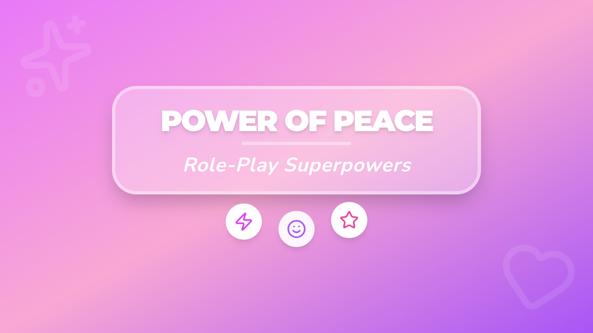 A visual presentation (Cool Down Slides) for role-playing scenarios. Each slide features a specific trigger (like being told 'no' or having a disagreement), a 'Stop & Think' reminder, and a positive 'Peace Choice' utilizing coping strategies. The design uses a vibrant pink and purple aesthetic with large, readable text.