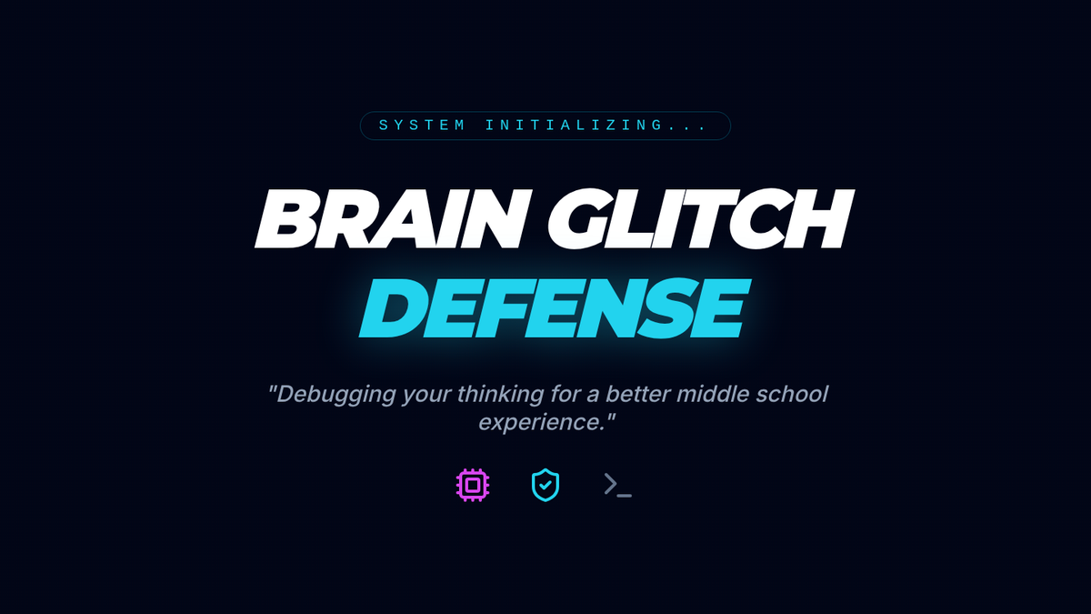 A highly polished slide deck for Mission 1 (Debugging the Mind) that matches the original 'Brain Glitch Defense' curriculum's tech/system HUD aesthetic. Includes specific lesson slides for Catastrophizing, Mind Reading, All-or-Nothing, and Personalization. Optimized for vertical fit and improved contrast, with all cutoff issues resolved. Removed answer key as requested.