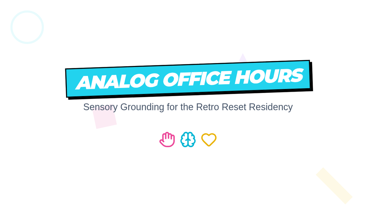 A 6-slide presentation for the 'Analog Office Hours' session. Features a vibrant 90s 'Trapper Keeper' aesthetic, grounding techniques using retro toys, and sensory regulation strategies for principals.