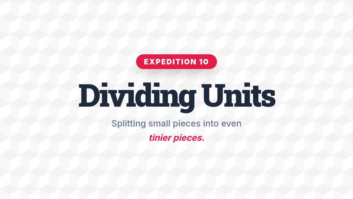 Visual slide deck for Lesson 10, demonstrating division of unit fractions by whole numbers using area models and real-world sharing stories.