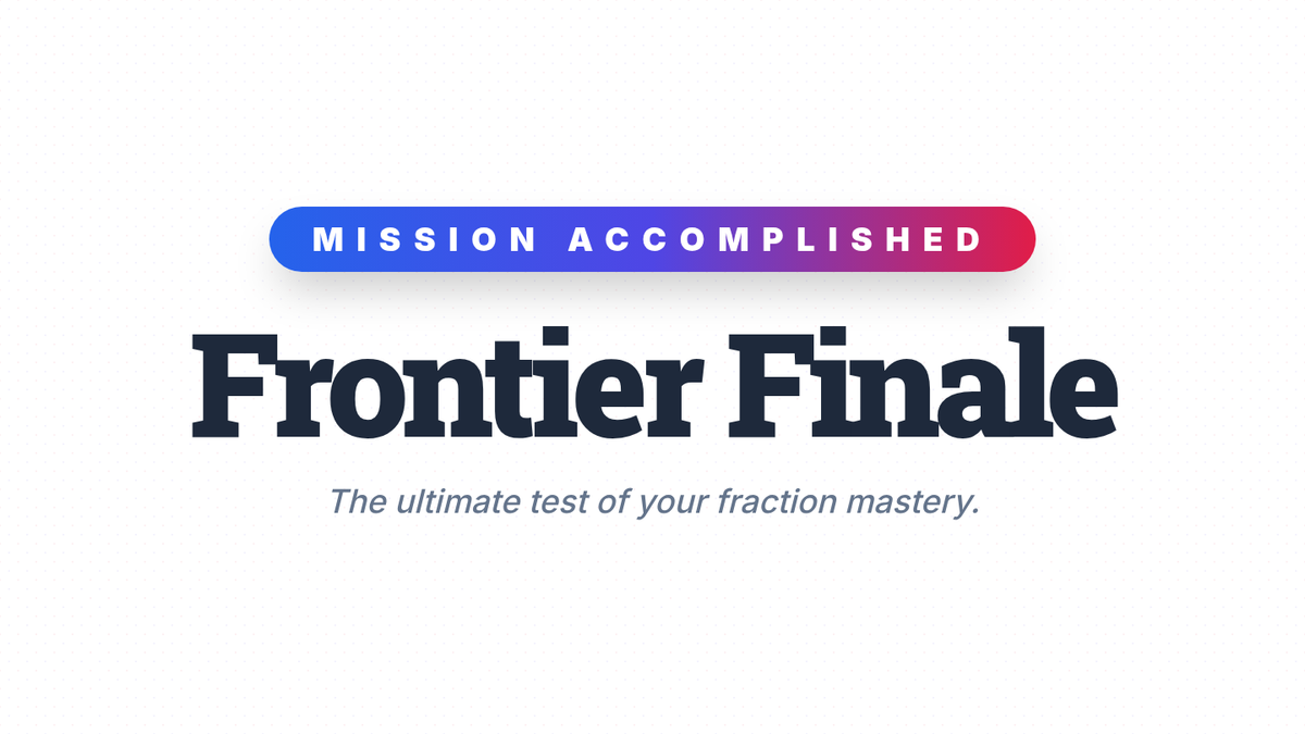 Final slide deck for Lesson 12, summarizing the journey through Fraction Frontiers and reinforcing the conceptual meanings of all four operations with fractions.