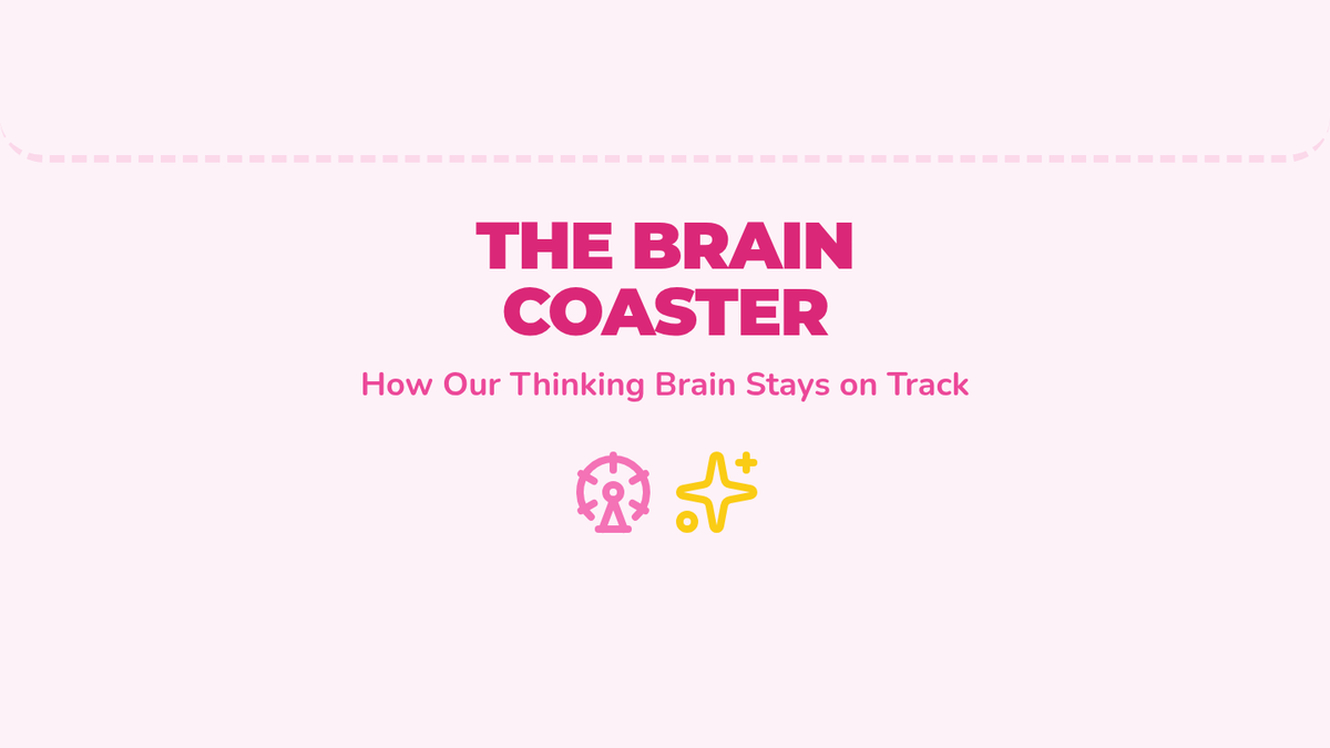 Updated visual slide deck using a pink rollercoaster theme to explain the science of brain regulation, featuring simplified analogies, the Zones of Regulation, and specific coping skills. Fixed contrast and icon issues.
