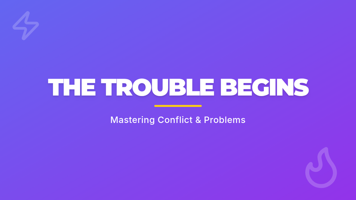 Bright and engaging slides introducing the concept of conflict in storytelling, covering internal vs. external types and common tropes.