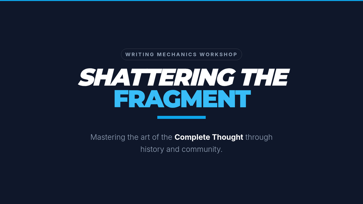 A 6-slide presentation deck for teaching sentence fragments, featuring high-contrast visuals, clear grammatical rules (The Golden Rule), and interactive practice slides on the 1963 March on Washington and the Harlem Renaissance. Includes specific textual excerpts for analysis. Layout optimized for projector visibility.