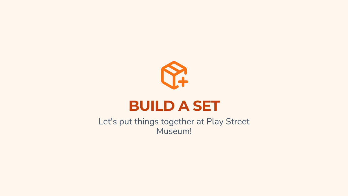Visual addition slides using museum-themed objects (fruit, blocks) to teach the concept of 'putting together' sets up to 10 for preschool special education.