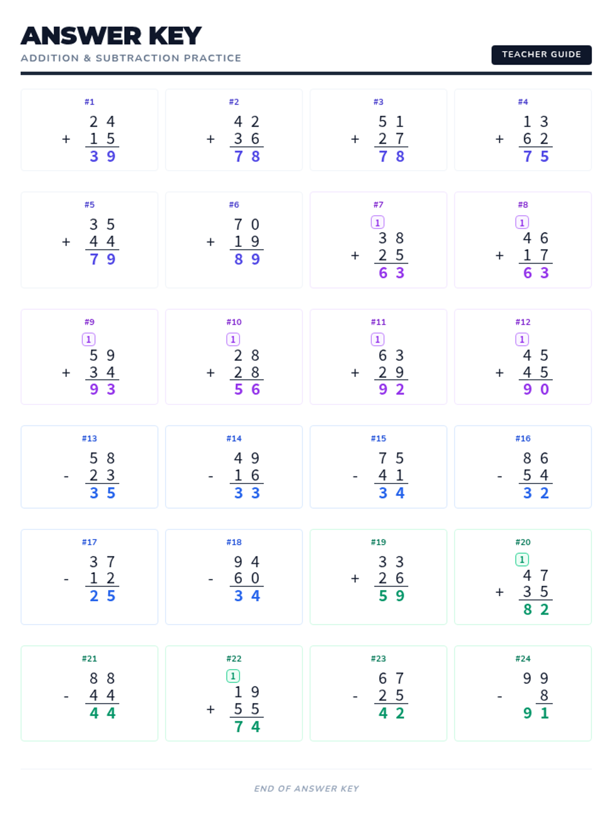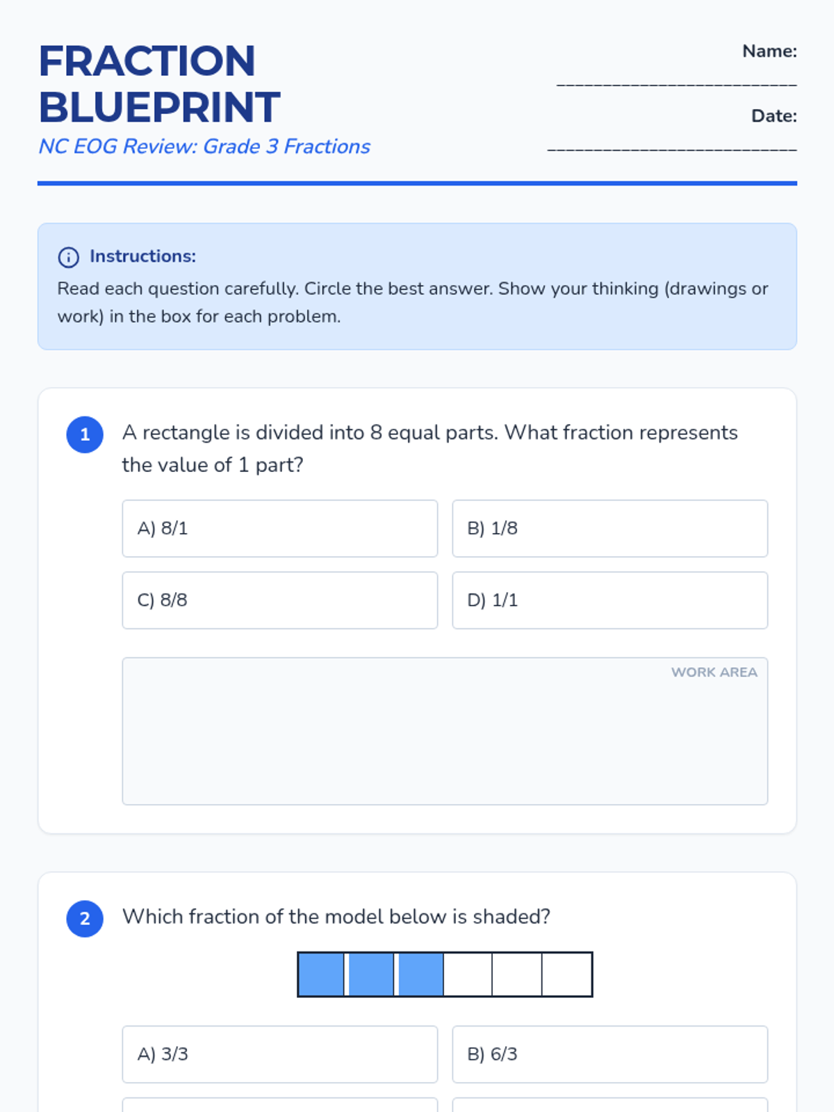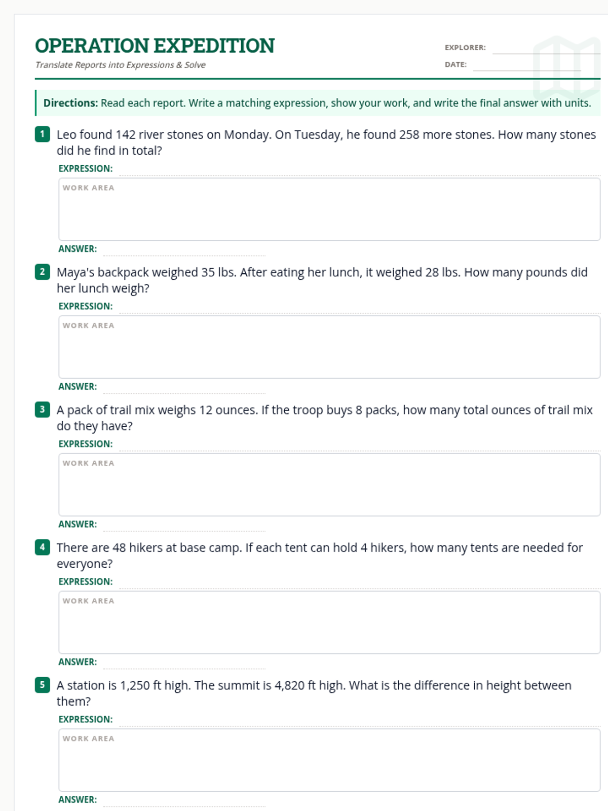 Teacher-facing answer key for the Power Practice Packet, providing correct answers, exemplar responses, and scoring guidelines for the 3rd-grade math standards covered. Updated with vertical equations for Q5-6 and visual diagrams for Q1-2. Optimized layout to prevent orphaned headers.