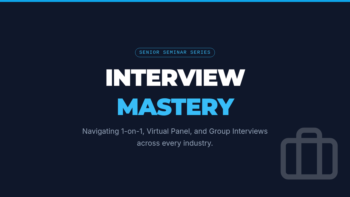 A dynamic visual presentation covering 1-on-1, virtual panel, and group interview formats across corporate, trade, and service industries. Includes updated technical prep checklists and improved contrast.