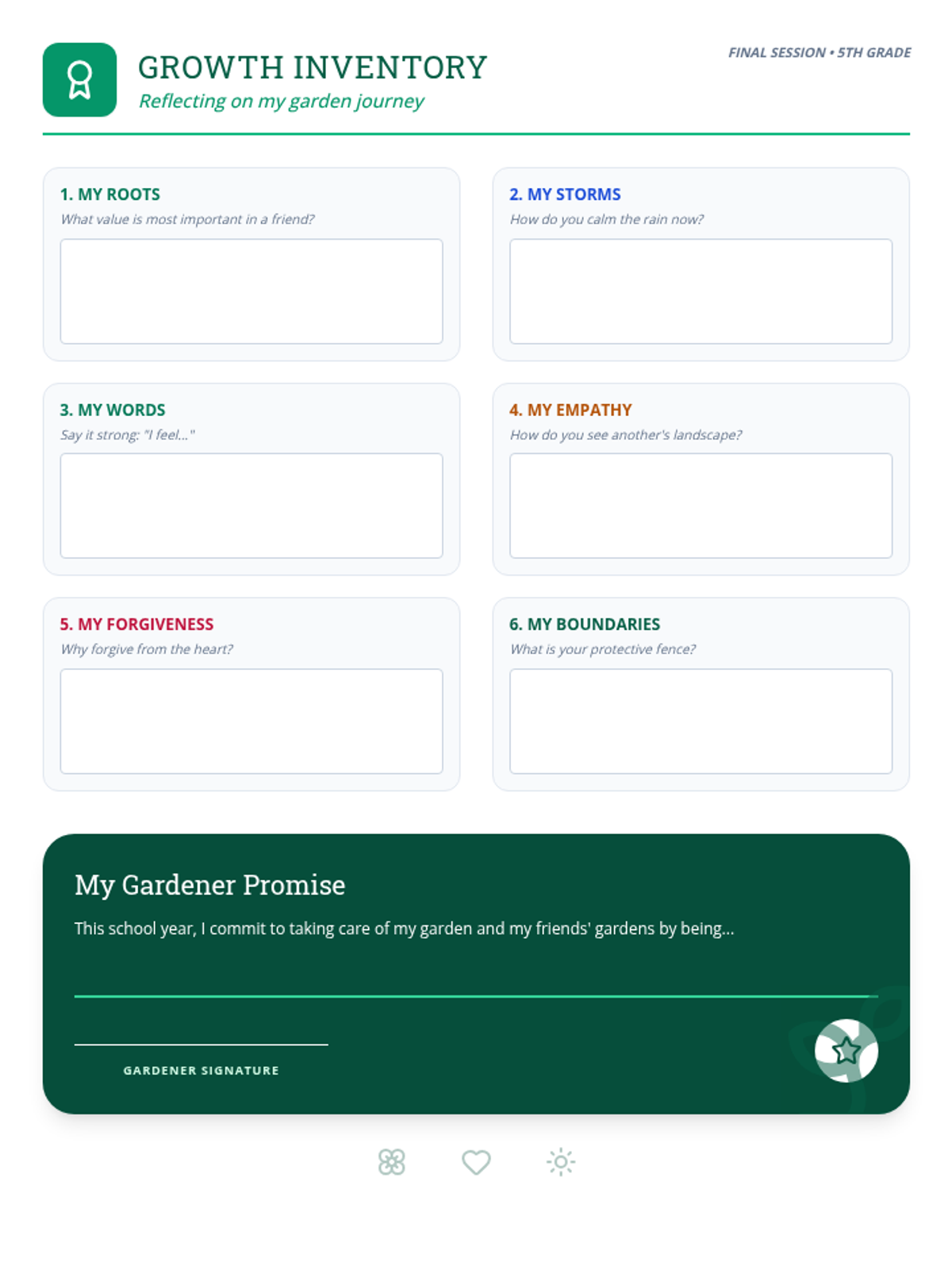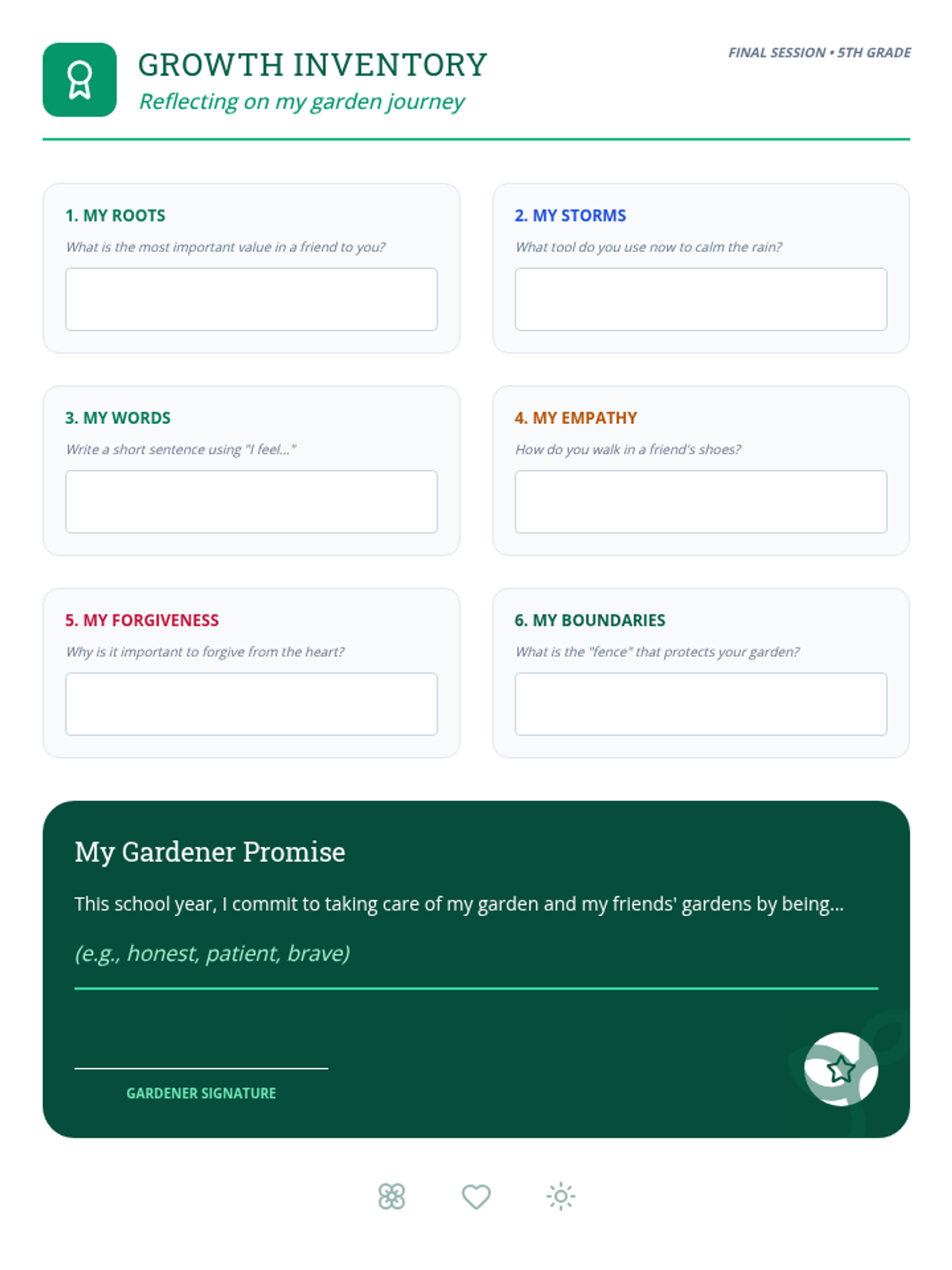 A full-page printable coping skills menu featuring a comprehensive list of 50 strategies. Each item is paired with a heart or star icon in a pastel rainbow theme, with updated options reflecting student interests like TikTok dancing, ponies, and cooking.
