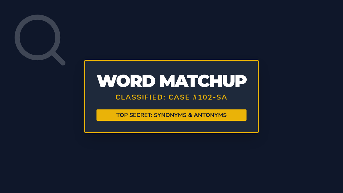 An interactive slide presentation introducing synonyms and antonyms with a detective theme. Includes definition slides, context-based practice questions, and detective strategies for identifying words in sentences.