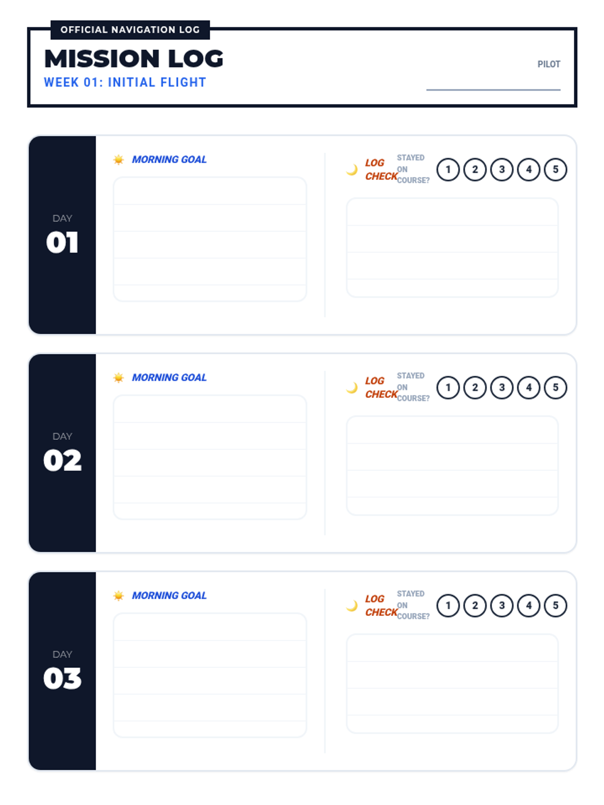 A two-week (10-day) student navigation log for daily morning goal setting and afternoon reflection on following directions.