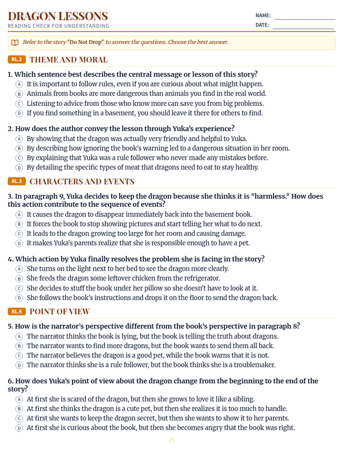 A revised worksheet for Lesson 2 featuring expanded passages, fixed page breaks, and uniform answer choices for MAP alignment.
