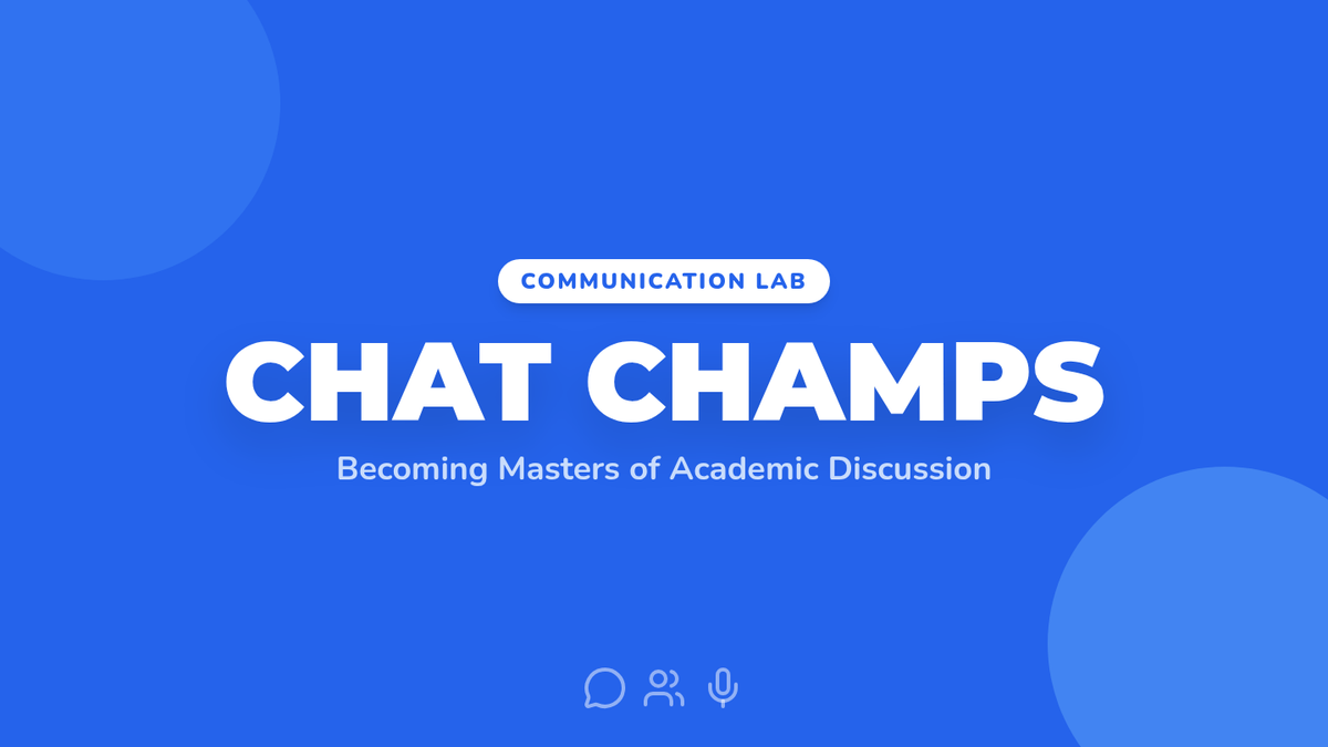 A bright, high-energy slide deck introducing the "Chat Champs" discussion framework, active participation strategies, and the visual rubric levels.