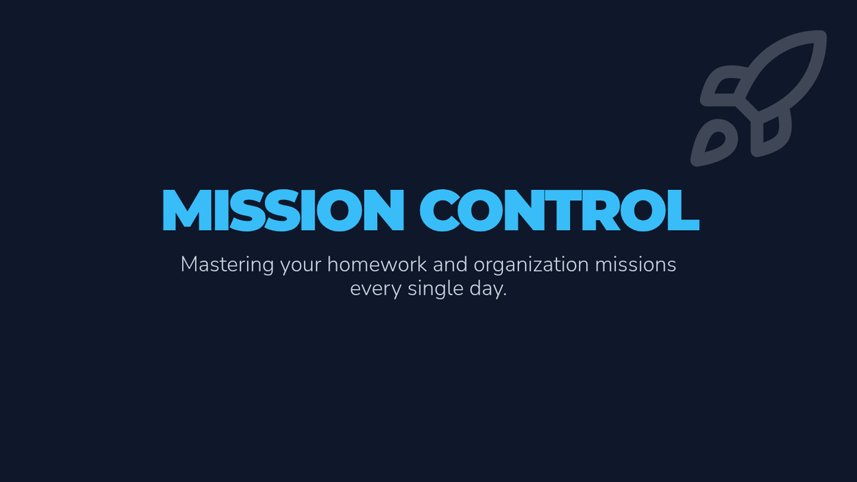 A revised motivational slide presentation for IEP students to introduce the Mission Control tracking system, explaining the Daily Launch Log and Commander Checklist.