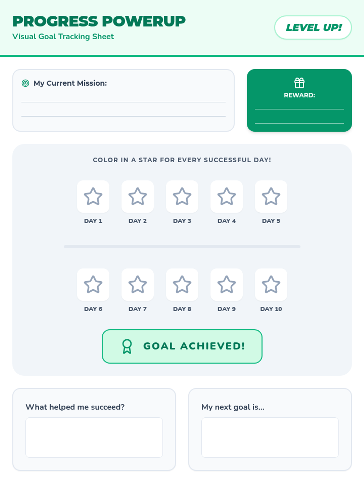 A revised visual progress tracker for IEP students to color in icons as they reach milestones toward a specific homework or executive functioning goal.