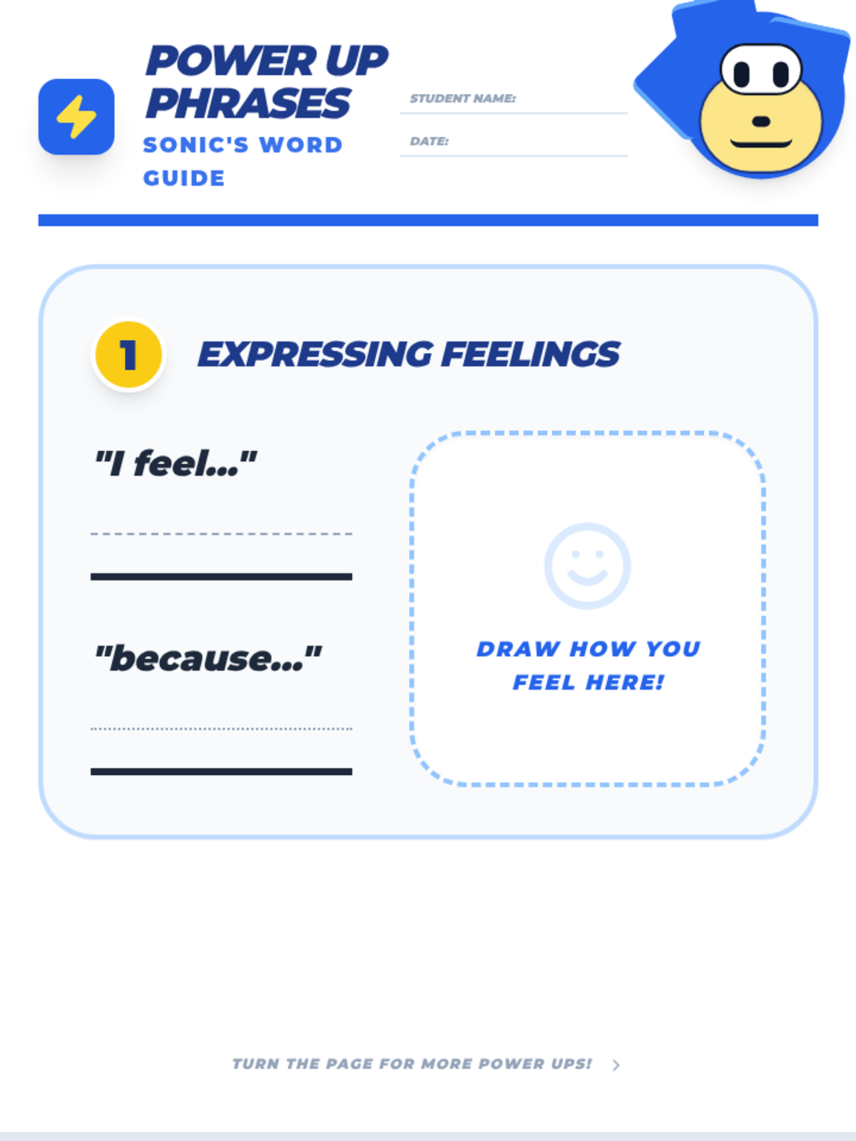 A Pre-K worksheet for practicing social scripts modeled by Sonic. It now features highly recognizable stylized Sonic avatars, spacious writing lines, and a visual reference of self-regulation strategies. Layout fixed for print.