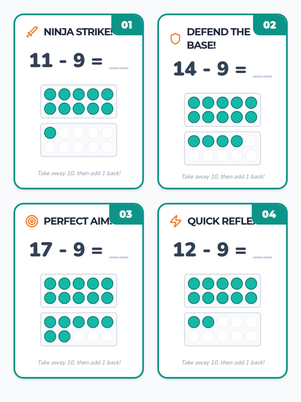 A set of 8 forest-themed task cards featuring two-digit addition and subtraction problems with regrouping.