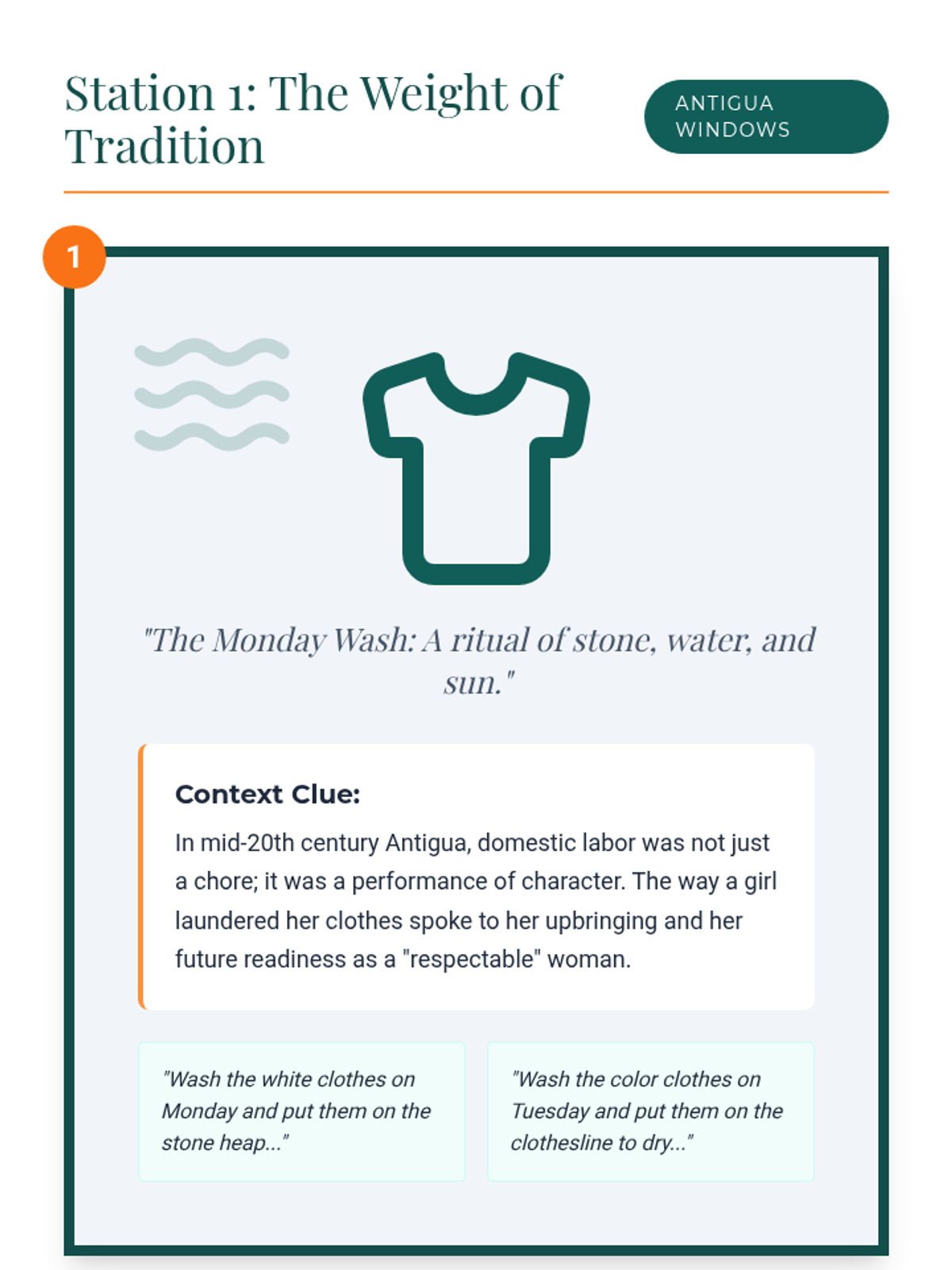 A 4-page student activity featuring three 'Gallery Walk' stations with visual symbols and context clues about Antiguan life, followed by a structured recording sheet for student analysis.