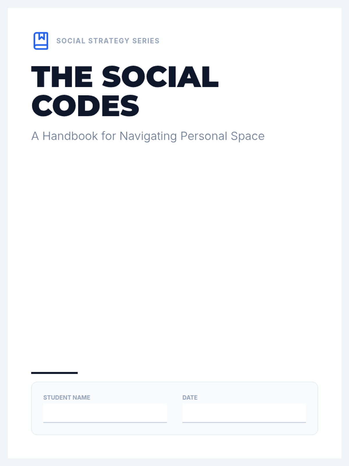A social strategy handbook for students containing guided reflections, body language decoding charts, and "pro-response" practice areas.