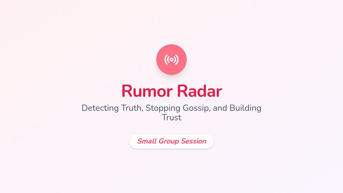 A visual slide deck for a small group counseling session on rumors, featuring definitions, the THINK test, and strategies to stop gossip.