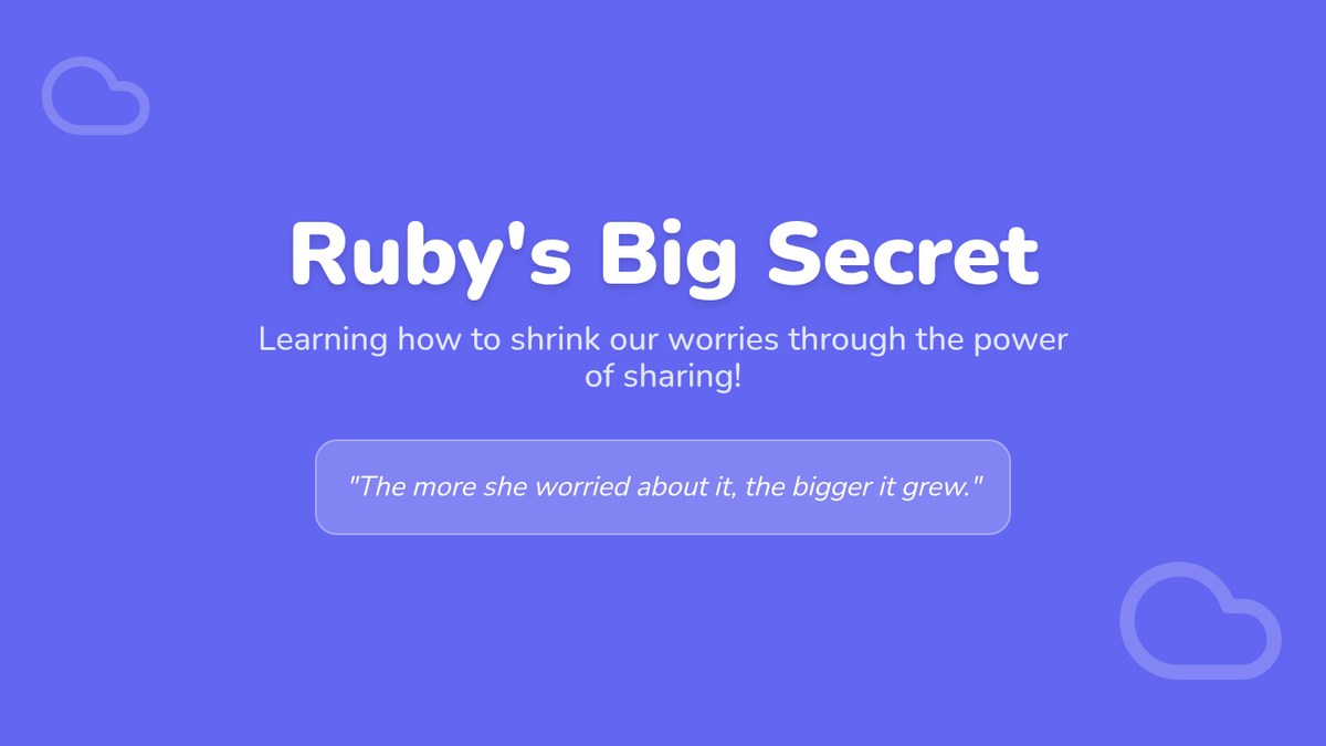 Visual slides to accompany the Ruby Finds a Worry lesson. Explains the concept of worries, how they grow when hidden, and how sharing them helps they shrink.