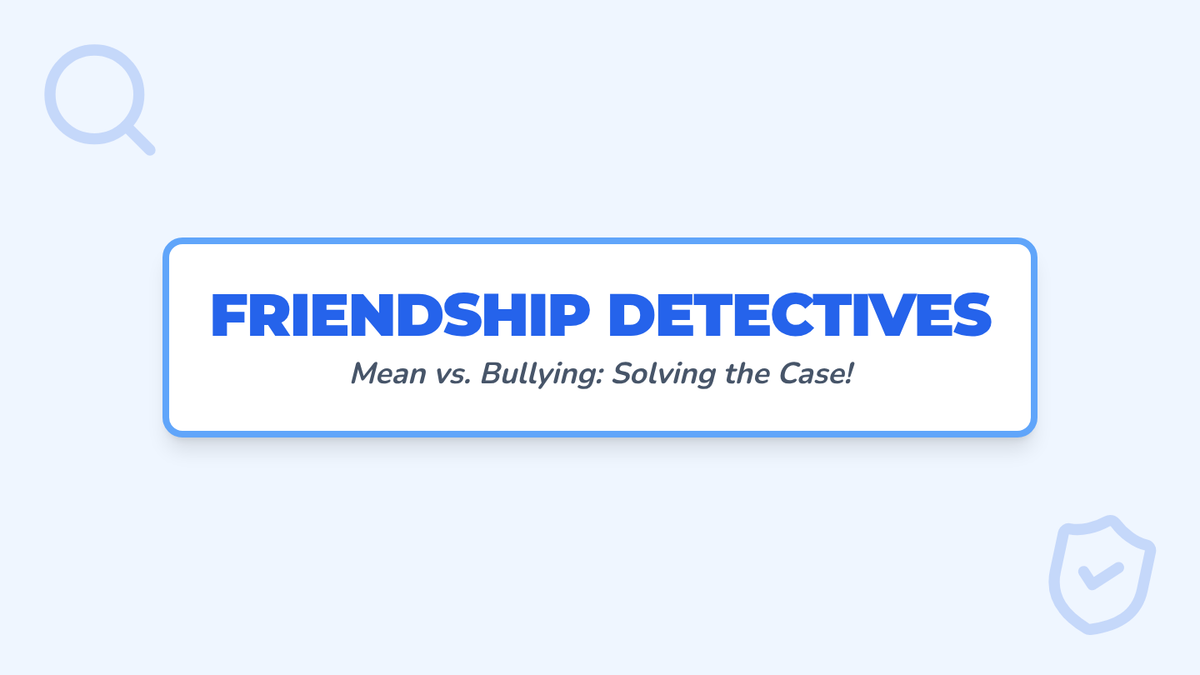A 7-slide visual presentation for 2nd graders that defines 'mean' and 'bullying' using a 'Detective' theme and the RIP (Repeated, Intended, Power) acronym. Includes a practice case study.
