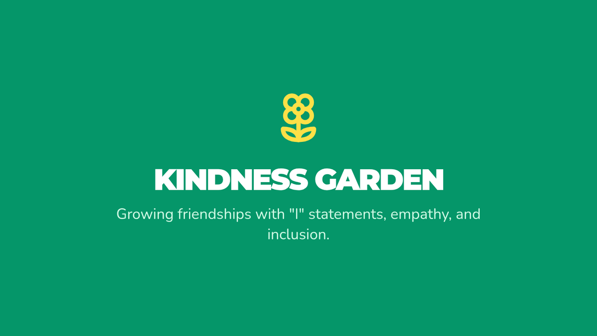 A visually engaging slide deck that introduces the concept of kindness as growth, teaches the structure of 'I' statements, and presents a case study on inclusion and conflict resolution.