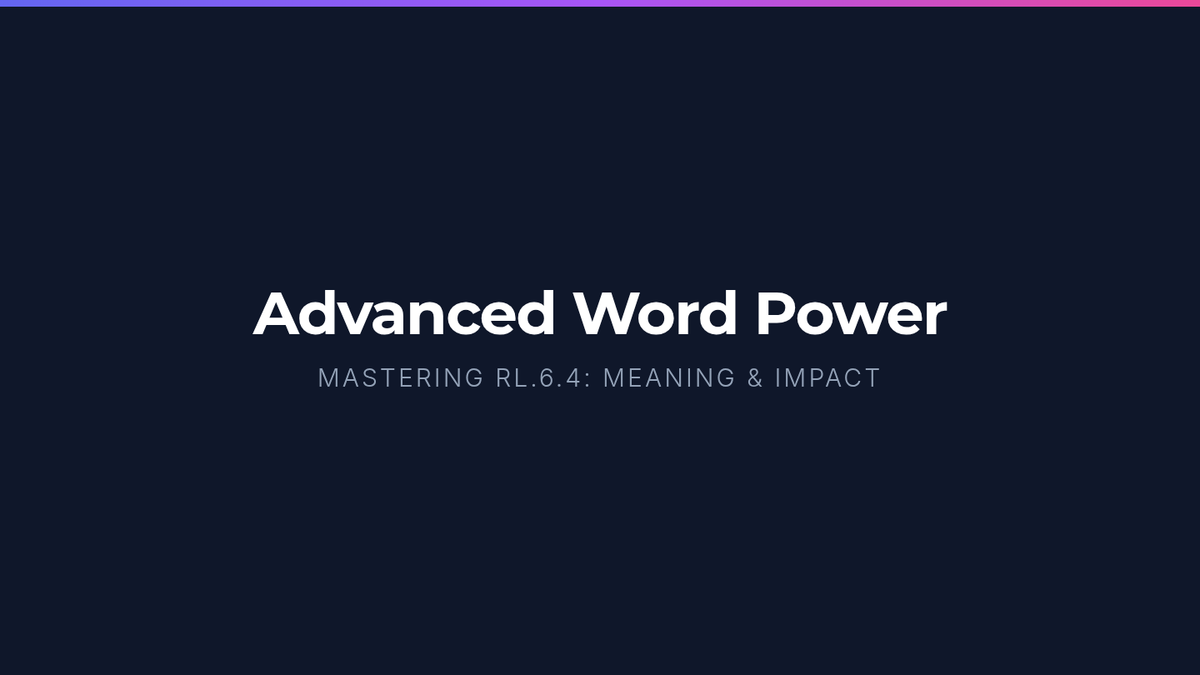 A comprehensive 18-slide deck for RL.6.4, featuring 15 practice questions across three advanced passages (Fiction, Poetry, Informational). Includes concept reviews and a final reflection. Strict single-page slide rendering. Updated for consistent alignment, high contrast, and visual polish. Final cleanup of reflection placeholders.