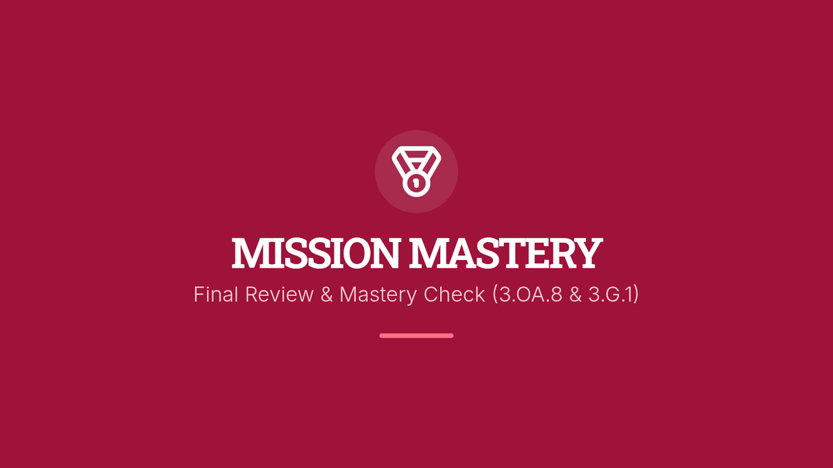 Instructional slides for Day 5 cumulative review. Consolidates multi-step problem solving and geometric hierarchy concepts to prepare students for the final mastery check.