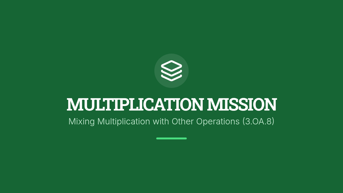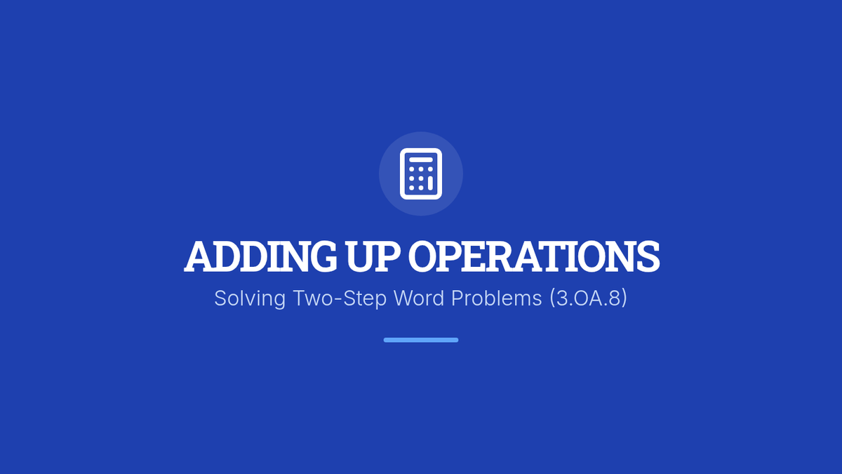 Instructional slides for Day 2 covering 3.OA.8 (multiplication/mixed operations). Features step-by-step problem breakdowns and collaborative equation building.