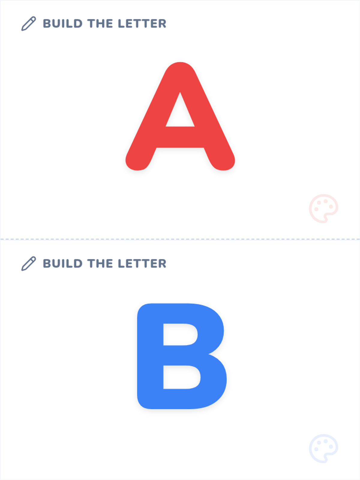 A complete set of 26 task cards (A-Z) featuring large, crayon-styled letters. Each card includes consistent instructional headers and icons to guide students in physical building activities.
