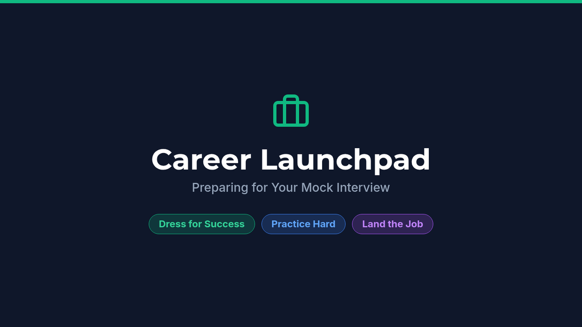 Visual presentation slides to guide students through the interview preparation process, covering job selection, clothing, resumes, and common questions.