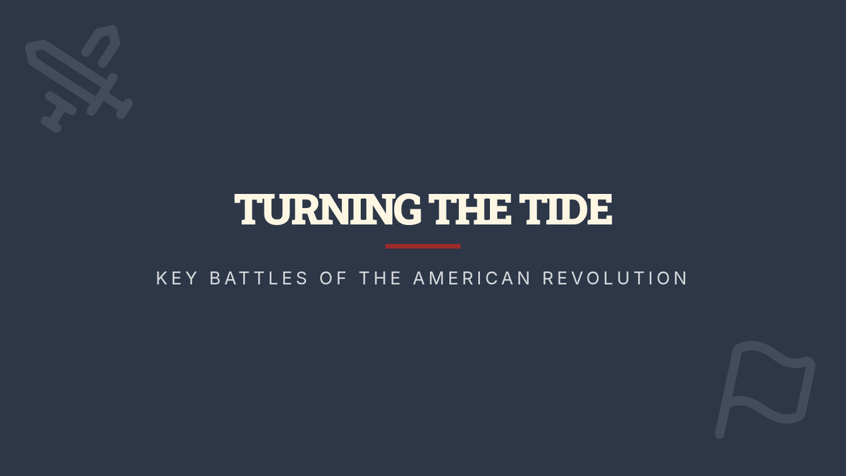 An instructional slide deck covering the key battles of the American Revolution. Revised for better text wrapping and icon accuracy.
