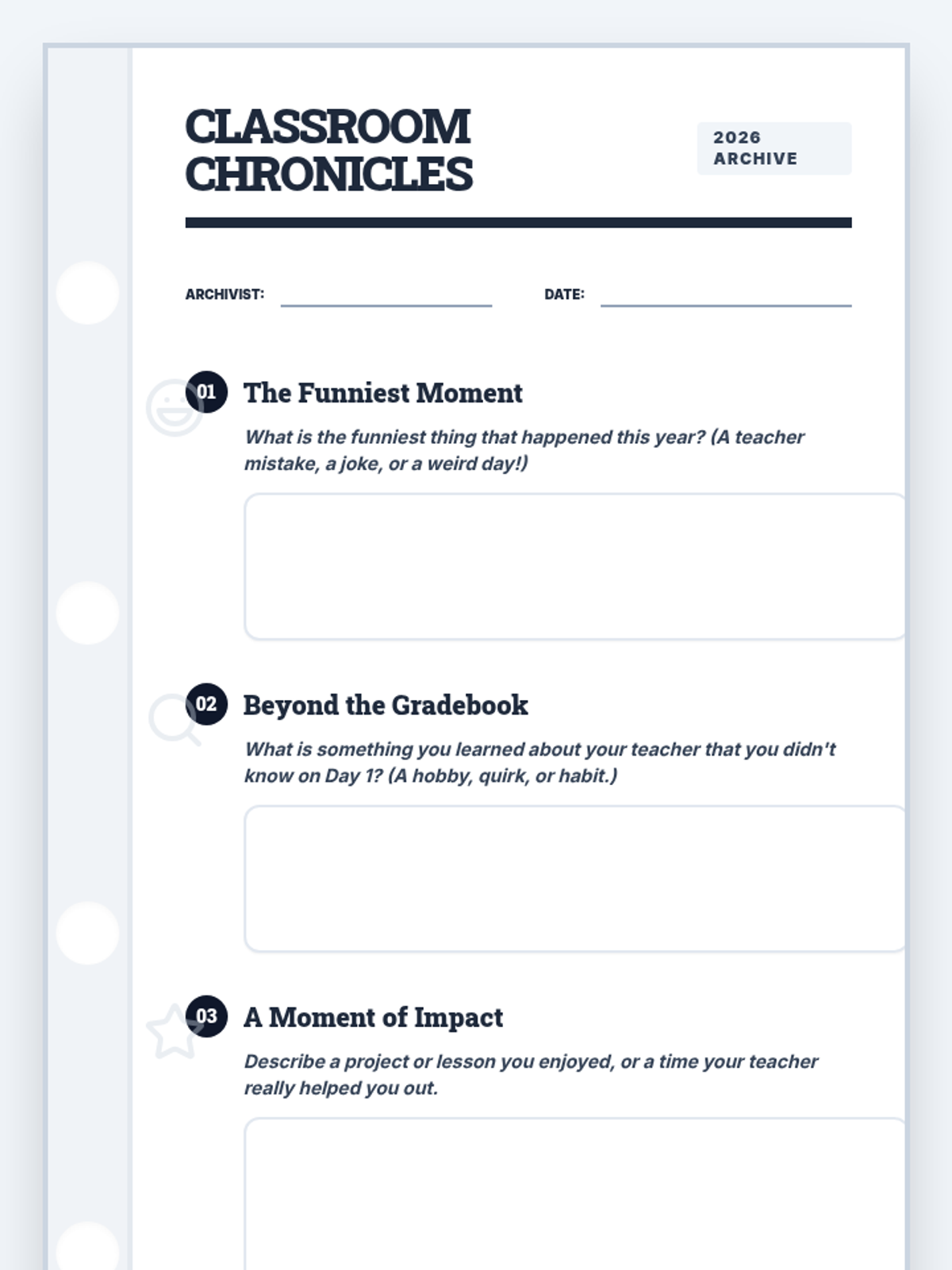 A student-facing final assessment and personal synthesis document. Optimized for single-page printing with improved page breaks, removal of specific year dating, and increased response area sizes. High-impact varsity aesthetic. Fixed handwriting legibility for the final script.
