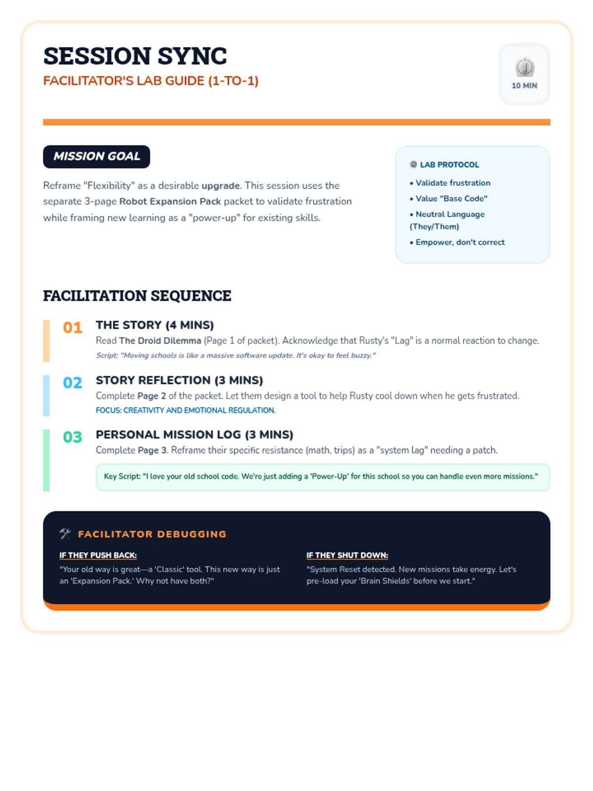 A comprehensive 13-slide presentation deck. Includes situational breakdowns for 5 types of transitions, developmental stages, parent/caregiver advice, and coping skills (CARES, Box Breathing). Features specific CUSD contact info and 988 emergency guidance. Revised with minor fixes for legibility and accuracy.