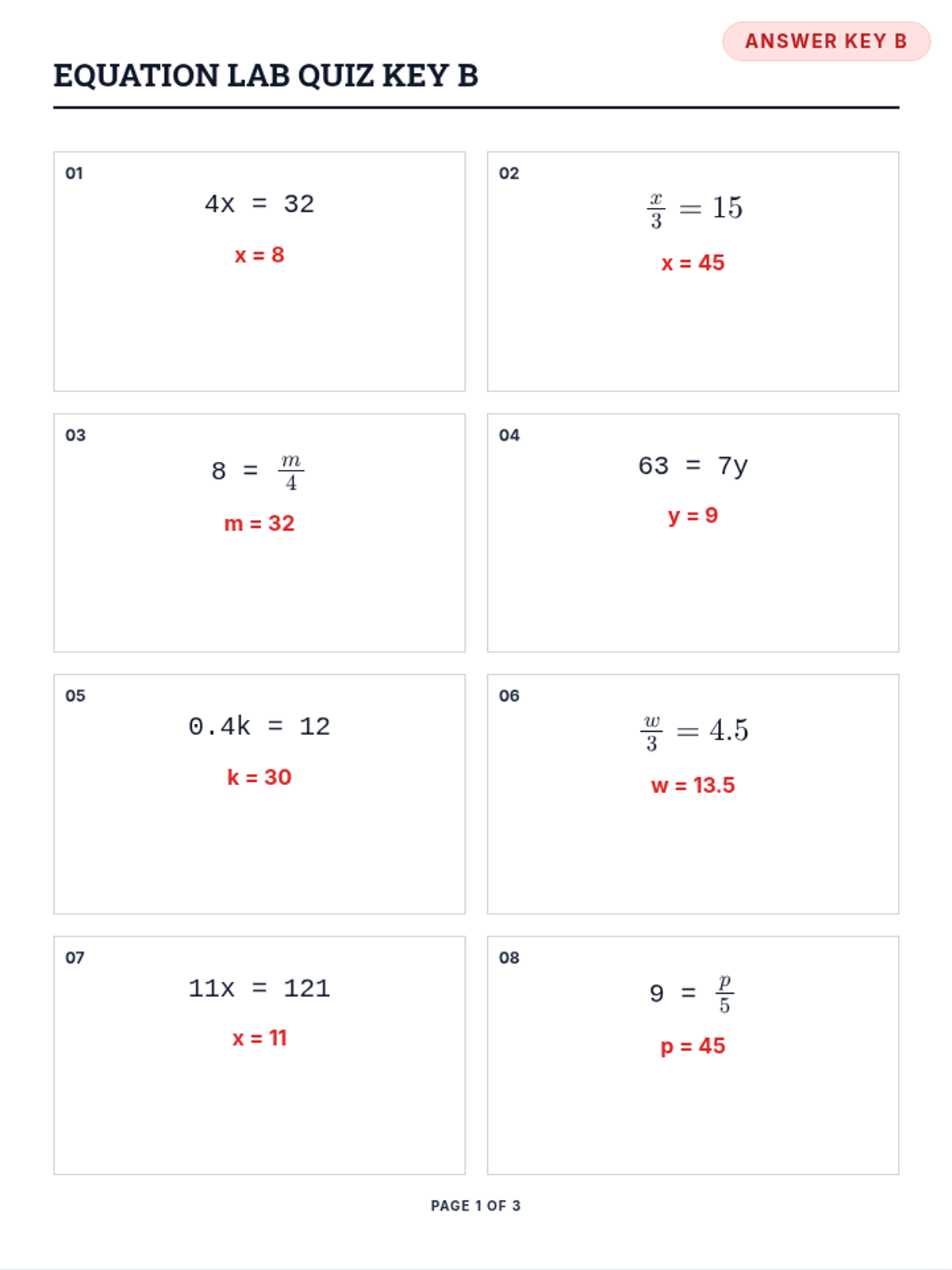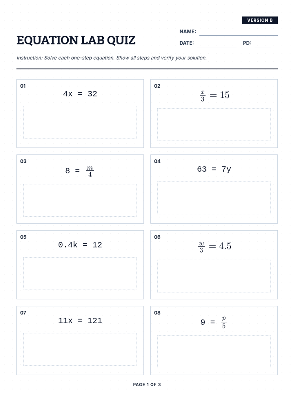 Equation Challenge Worksheet B