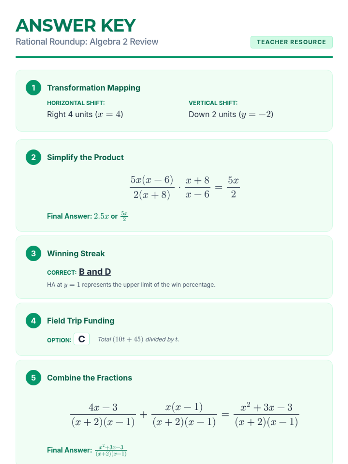 A teacher guide for the 'Shape Shifters' lesson, including pacing, learning objectives, an algebraic rule cheat sheet, and an answer key for the Tetris activity.
