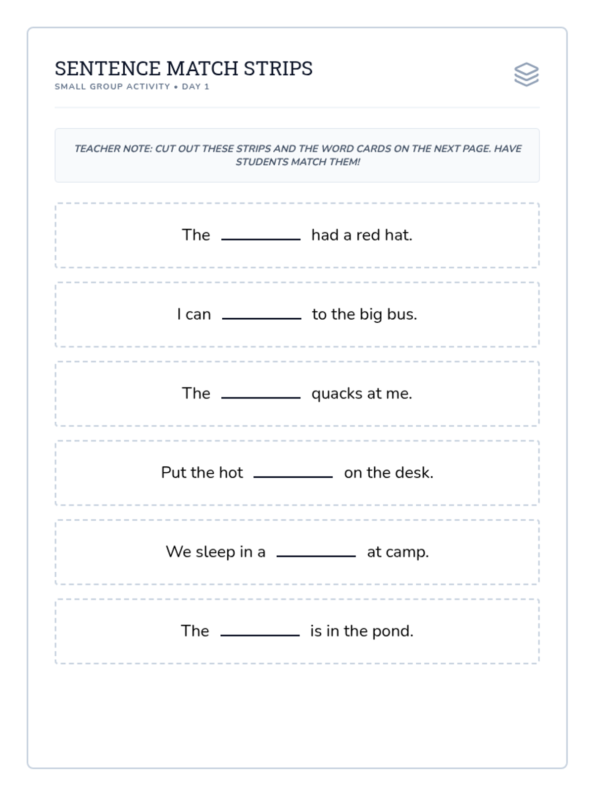 A matching activity with sentence strips and word cards for small group instruction. Students use context clues to pair sentences with the correct decodable words.