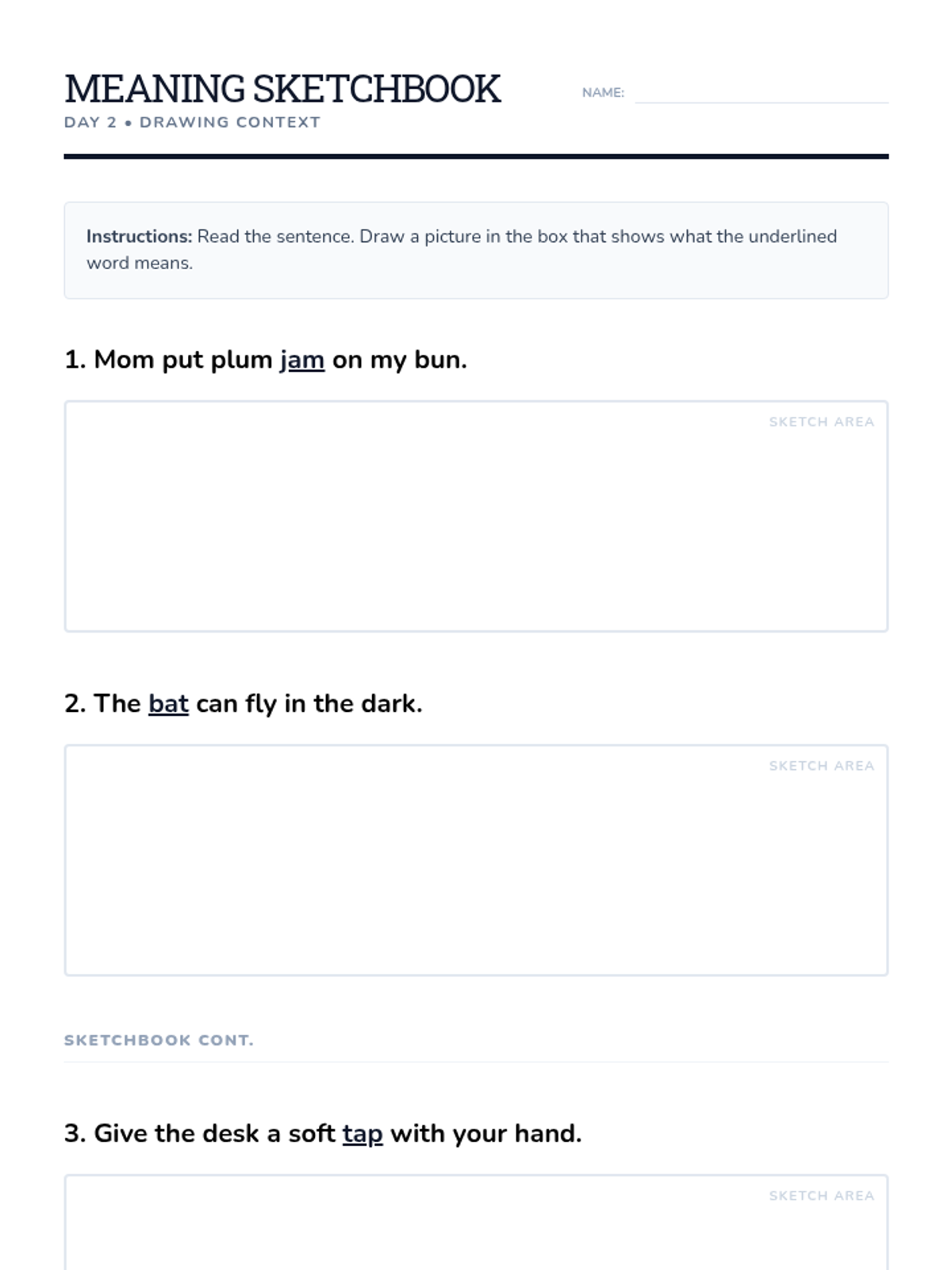 A drawing-based activity where students read sentences with multiple-meaning words and sketch the specific meaning indicated by the context. Provides a creative way to assess comprehension.
