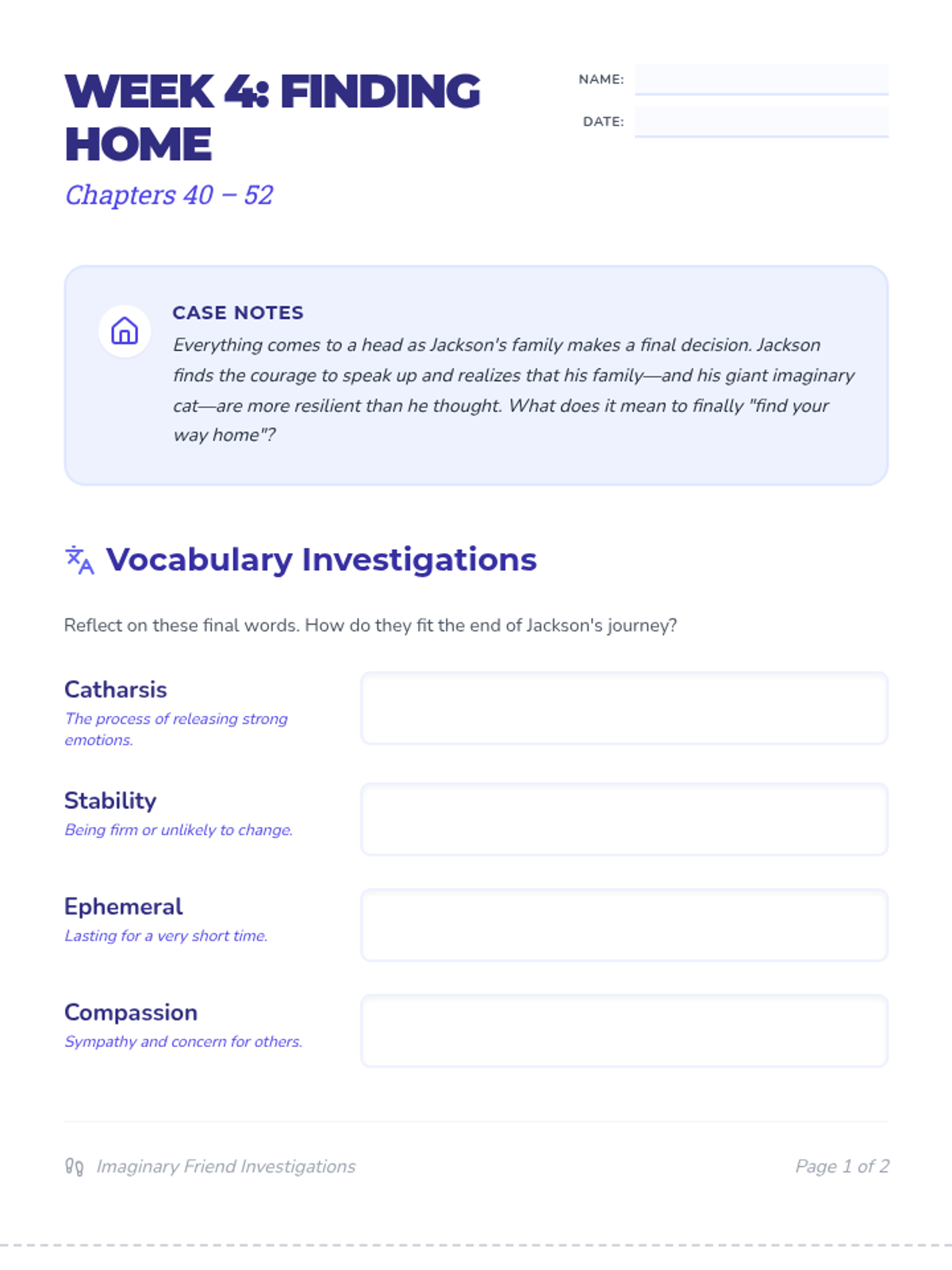 Student packet for Week 4 (Chapters 40-52) focusing on the resolution of Jackson's journey and the power of honesty.