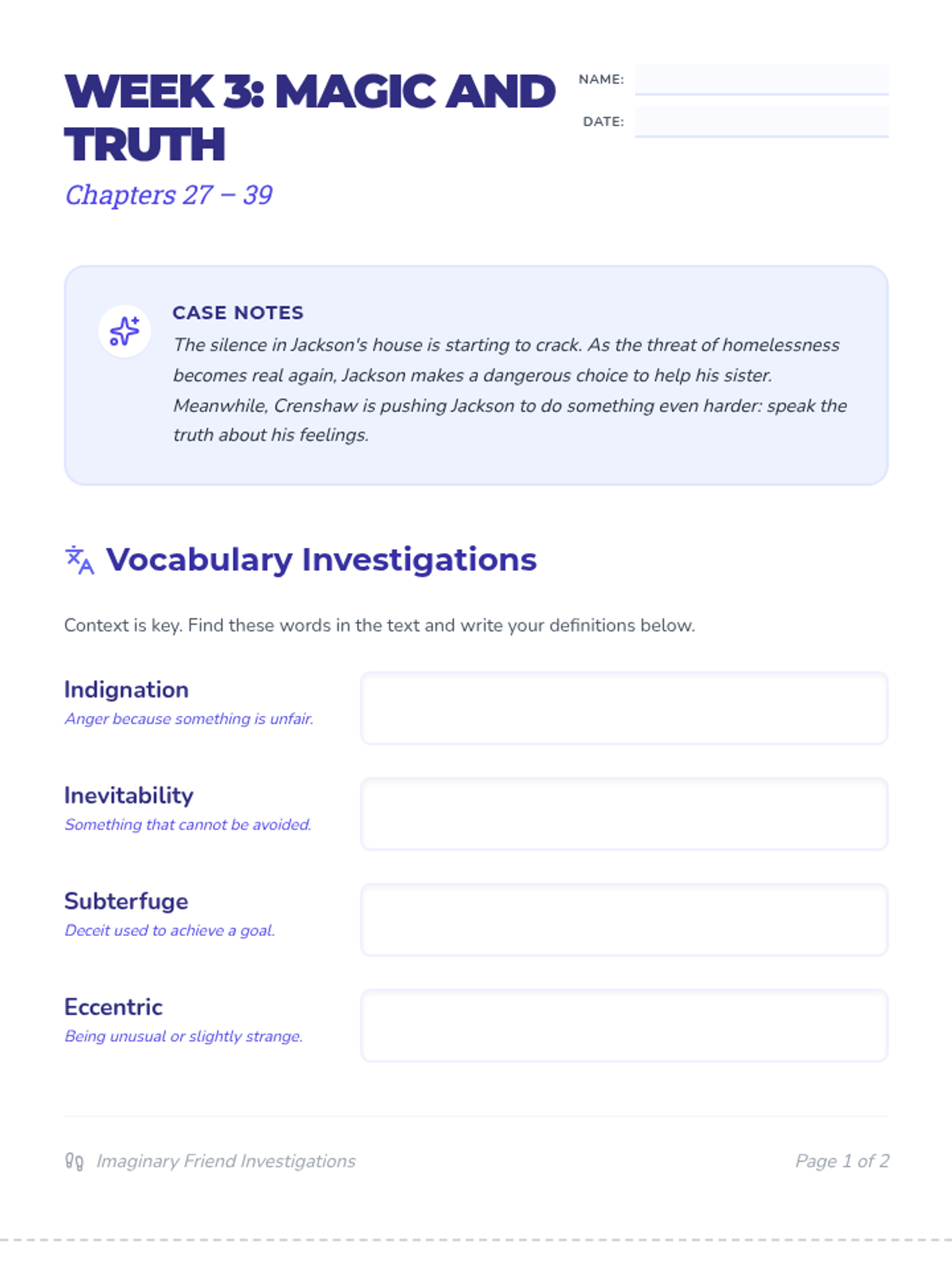 Student packet for Week 3 (Chapters 27-39) exploring Jackson's shoplifting, family tension, and the theme of truth-telling.