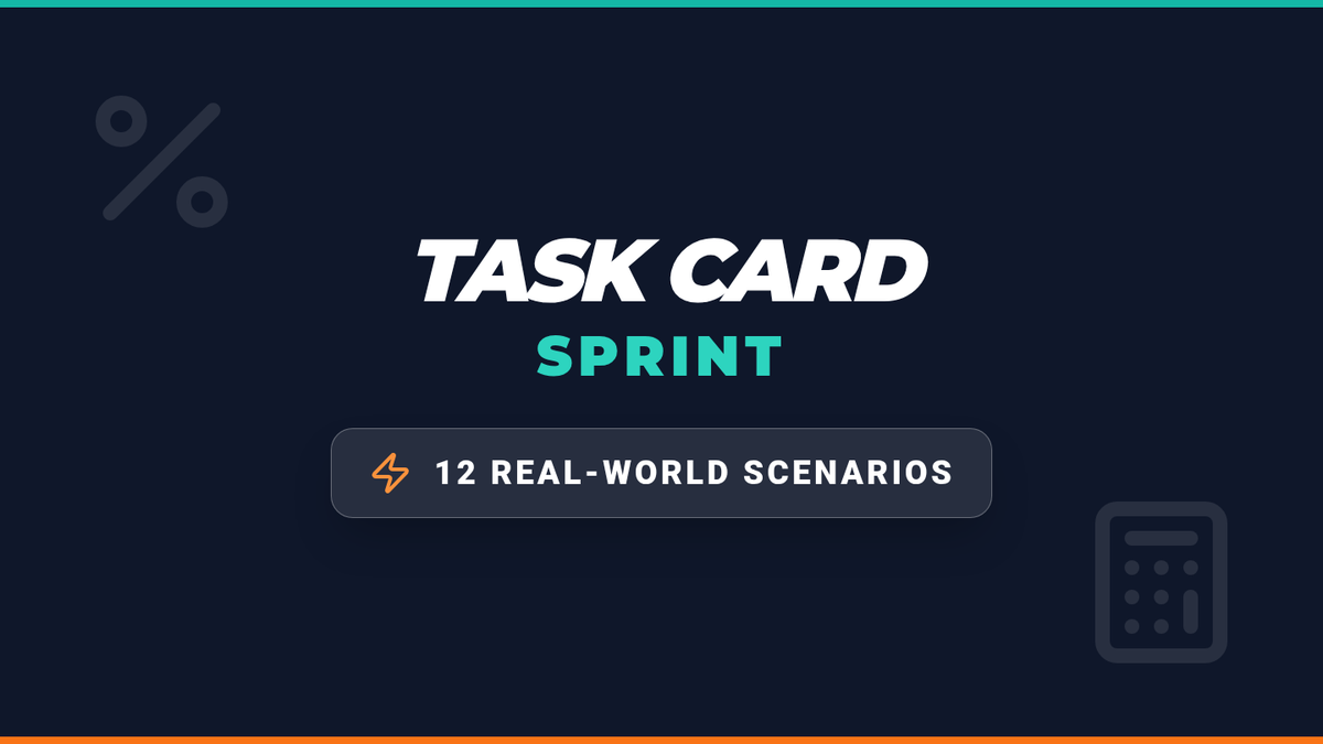 Interactive slide presentation of the 12 percent of change task cards, featuring one task per slide with large, high-visibility text and bold graphics for classroom-wide instruction. Updated for improved contrast and visual clarity.