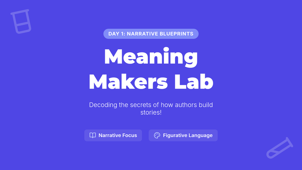 Visual presentation for Day 3 of the Meaning Makers Lab. Introduces poetry structure (lines, stanzas) and figurative language (metaphors, rhyme, imagery) using lab motifs.